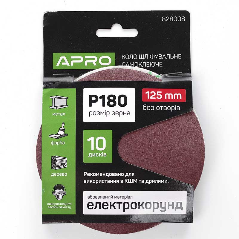 Коло шліфувальне без отворів (на липучці) Ø125мм P180 (10шт.) (APRO)